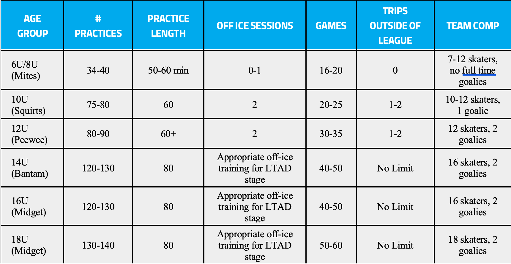 ADM Age-Appropriate Hockey 8U through 18U Summaries