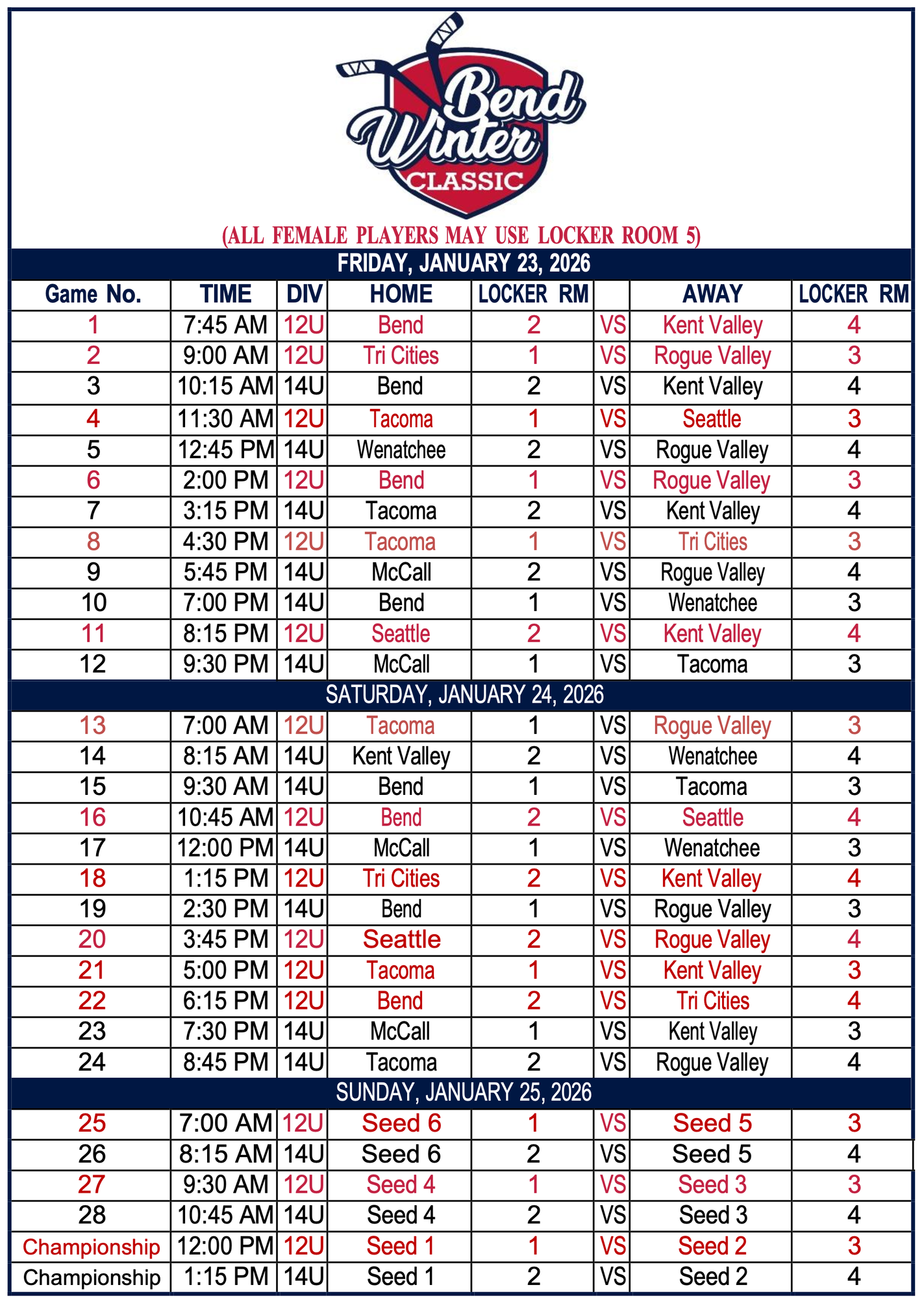9/12/25 UPDATE - Registration is closed. Tournament is full. Email tournament@bendrapidsyouthhockey.org to be notified of any cancellations.